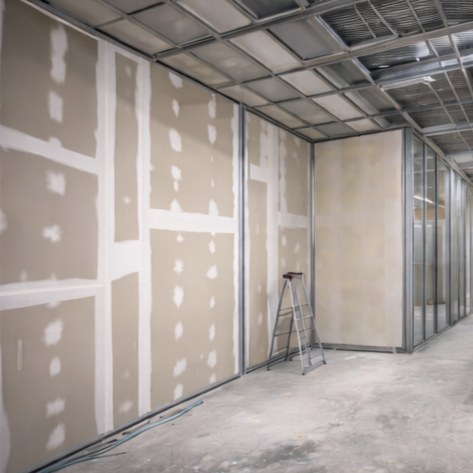 High-quality plasterboard and drywall installations for office fit-outs and commercial interiors. Strong metal stud frameworks, smooth finishes, and fire/acoustic compliant systems.